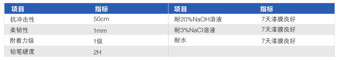 ●漆膜具有良好的耐油、耐水、耐鹽霧性、耐鹽水、耐化學(xué)品腐蝕性